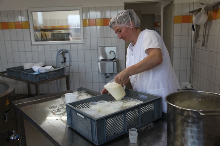 Wir stellen Frischkäsevariationen, Weichkäse mit Edelschimmel und Schnittkäse her. Unser Schnittkäse hat eine Naturrinde, die während der mehrwöchigen Reifung in unserem Reifekeller regelmäßig mit Salzwasser und Olivenöl geschmiert wird. Alle unsere Käsesorten sind nach den Bio-Richtlinien zertifiziert. Auch verkaufen wir Bio-Ziegenlammfleisch und weißgegerbte Felle in verschiedenen Größen.
