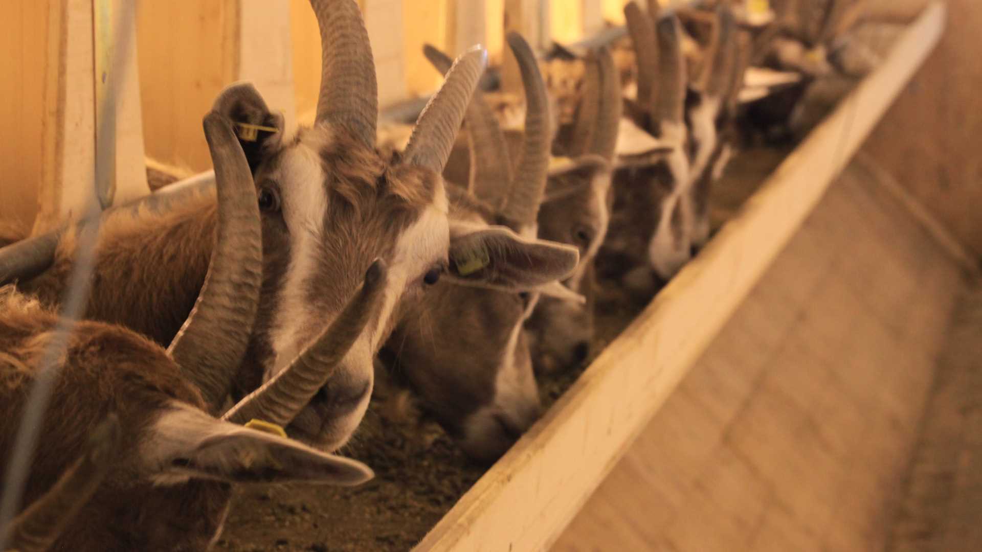 Die Tiere leben im Herdenverband, in einem Kaltstall mit zugfreien, eingestreuten Liegeflächen. Da unsere Ziegen ihre Hörner haben, brauchen sie besonders viel Fressplatz und Ausweichmöglichkeiten. Wir haben unseren Stall sehr großzügig bemessen, um dem Bedürfnis nach ausreichender Distanz in der Herdenhierarchie entsprechen zu können. Auch erhöhte Liegenischen zum Zurückziehen werden von den Ziegen gerne angenommen.